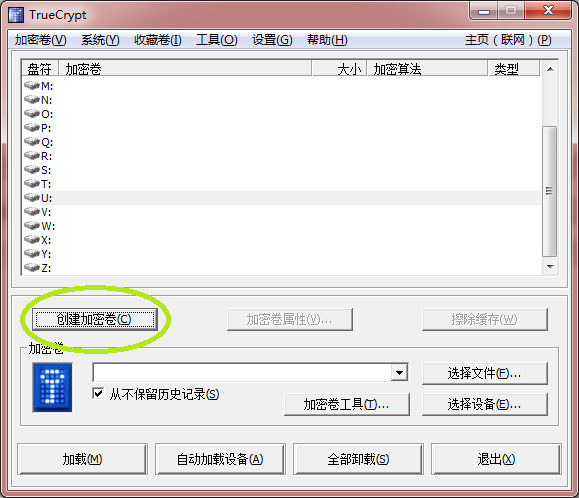 点击“创建加密卷”按钮