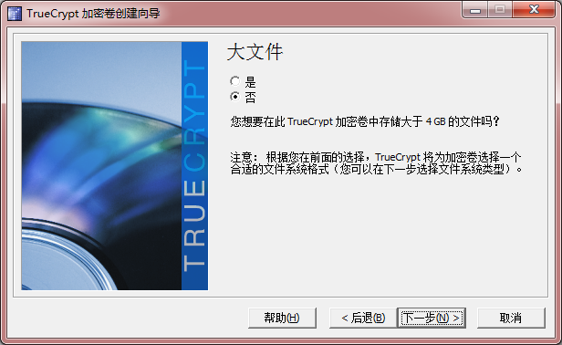 加密卷的文件类型可以是FAT或NTFS,前者更高效,但不能存储大于4G的单个文件,如果没有大于4G的文件需要加密推荐保持默认