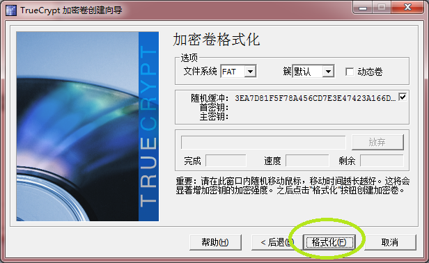 最后,格式化创建的加密卷,注意,这里的“格式化”并不会删除任何硬盘上的文件,应该理解为“生成加密卷”更为合适宋瑞华 www.songruihua.com
