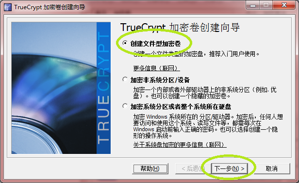 选择“创建文件型加密卷”,点下一步