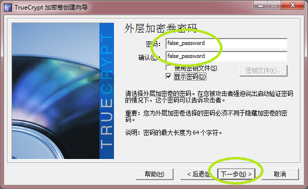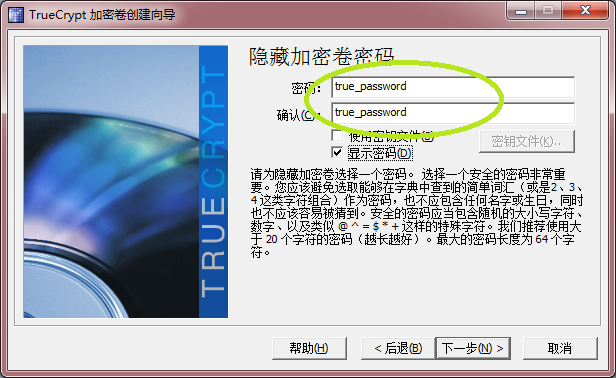 隐藏加密卷的密码就是上面说的“真密码”,示例为 true_password