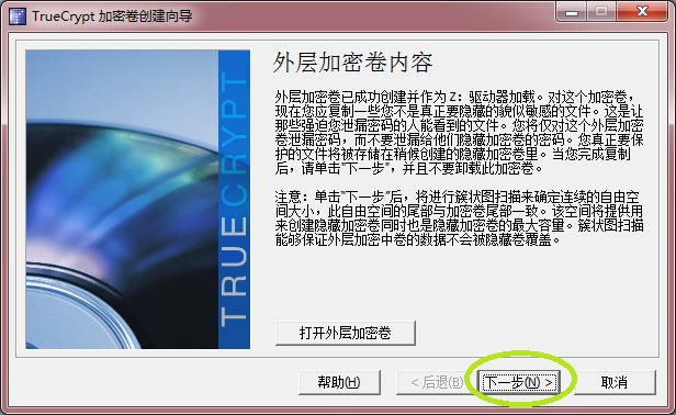 点击“打开外层加密卷”按钮