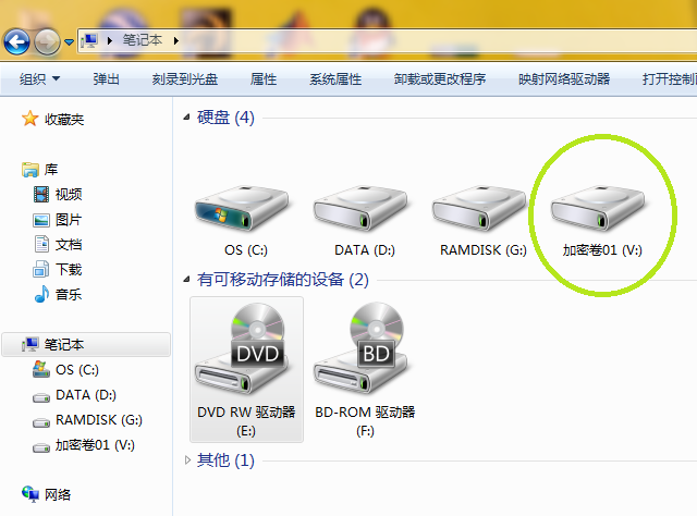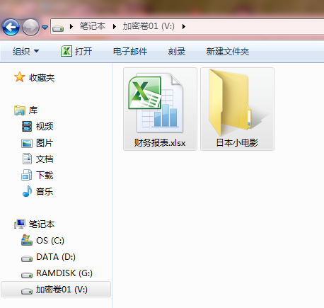 打开V盘,往里面放一些真正需要加密的文件