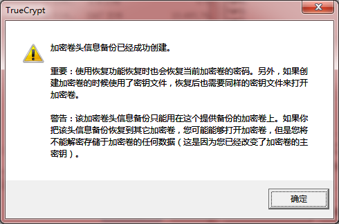 加密卷在资源管理器中就是一个普通文件,在硬盘上此文件的头部保存有加密卷的密钥,如果因为硬盘故障导致加密卷头部信息缺失,或者更改过密码后忘记了新密码但仍记得旧密码,碰到这些情况就可以恢复加密卷头信息,恢复后的密钥与备份时的密钥完全一样。